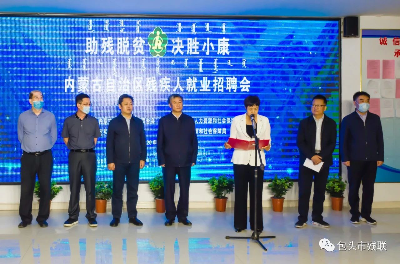 在全国两会胜利召开之际,为扎实做好残疾人“稳就业”工作,克服新冠肺炎疫情带来的不利影响,切实帮助残疾人实现就业。5月22日,自治区残疾人就业专场招聘会在我市人力资源市场举办。此次活动由自治区残疾人联合会、自治区人力资源和社会保障厅主办,包头市残疾人联合会、包头市人力资源和社会保障局承办。自治区残联党组书记、理事长佟国清、包头市政府副市长王秀莲、自治区残联党组成员、副理事长贾鹏、教就部主任伊卫军、自治区残疾人就业管理中心主任张勤、自治区人社厅农牧民工管理处处长李国华出席启动仪式。启动仪式由包头市残联党组书记、理事长张瑞平主持。